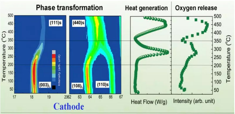 此外,在對特征溫度的對應機理進行研究過程中,他們發(fā)現(xiàn)商品化NCM/C鋰離子電池熱失控過程中主要的熱源來自于正負極在高溫下的氧化還原反應而不是之前普遍認為的電池內(nèi)短路。