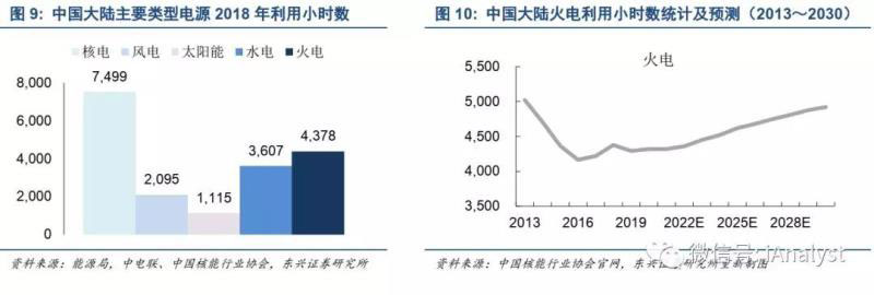 我們預(yù)計,未來十余年,核電年利用小時數(shù)將大概率不低于7,350h,并承擔(dān)基荷電源清潔化之大任;隨著消納進(jìn)一步改善、“平價上網(wǎng)”導(dǎo)向下項目選址向優(yōu)勢資源區(qū)集中、海上風(fēng)電建設(shè)加快,光伏、風(fēng)電并網(wǎng)項目利用小時數(shù)到2030年有望分別達(dá)到1,180h、2,240h;隨著一些小容量機(jī)組逐步關(guān)停、行業(yè)整合提效,火電利用小時數(shù)逐步回升,預(yù)計2030年達(dá)到4,920h,如圖10所示。