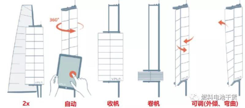 Energy Observer雙體船全新風(fēng)力發(fā)電系統(tǒng)Oceanwings wings®翼展達(dá)12 m,機(jī)翼面積31.5 m2,具有自支撐功能,360°旋轉(zhuǎn),該系統(tǒng)由Energy Observer研究團(tuán)隊(duì)和CNIM集團(tuán)在VPLP Design專利下合作開發(fā)。VPLP Design的靈感和經(jīng)驗(yàn)來(lái)自于美洲杯帆船上的剛性翼,空氣動(dòng)力學(xué)性能優(yōu)于傳統(tǒng)的船帆,但恰恰是剛性限制了其發(fā)展(沒有傳統(tǒng)索具減少表面積的能力,無(wú)法收帆和傾斜)。