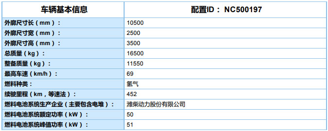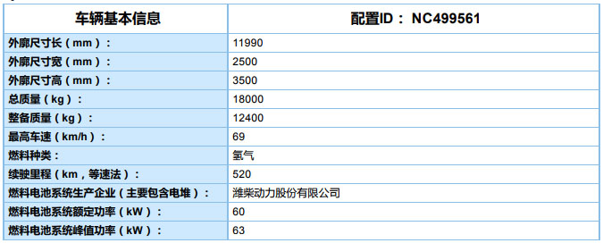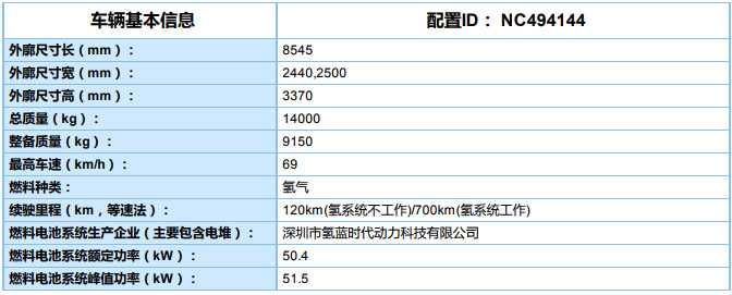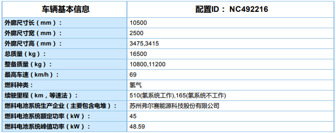 其中,濰柴動力配套2款,燃料電池系統(tǒng)額定功率分別為50 kW、60 kW;豫氫動力配套2款,額定功率分別為42 kW、45 kW;捷氫科技配套1款,額定功率為83.5 kW;弗爾賽配套1款,額定功率為45 kW;氫藍時代配套1款,額定功率為50.4kW。本批次所有車型燃料電池系統(tǒng)平均額定功率為53.7 kW。