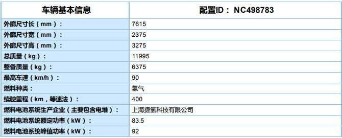 本次推薦目錄有兩大亮點:1、捷氫科技配套的燃料電池系統(tǒng)額定功率83.5 kW,在目前所有已出的有效推薦目錄車型中,額定功率居第二,僅次于2019年第11批中上海杰寧配套的江鈴重汽燃料電池半掛牽引車,該款車型燃料電池系統(tǒng)額定功率95 kW;