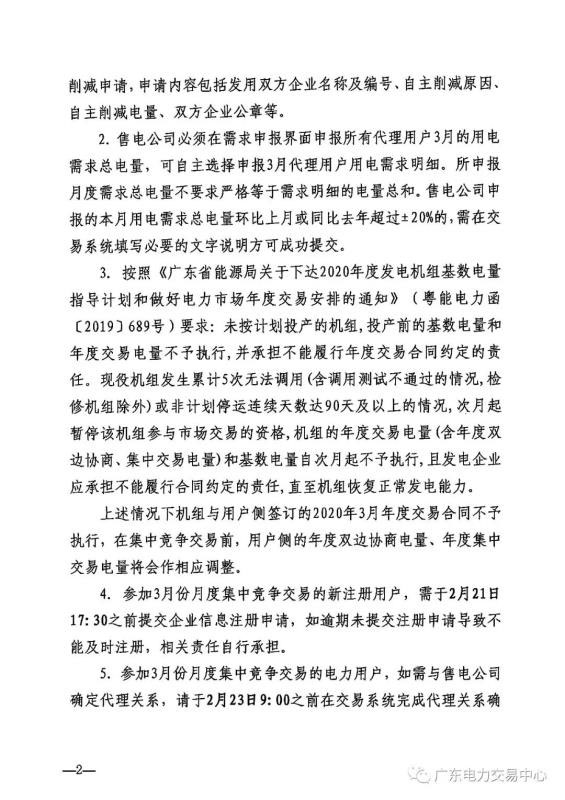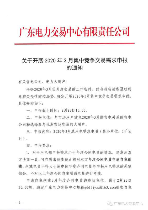 對于用電側(cè)申報需求小于年度合同電量的情況,經(jīng)發(fā)用雙方協(xié)商一致,可在需求調(diào)查截止前對雙方年度合同電量申請自主削減,并于2月23日10:00前,通過廣東電力交易中心郵箱gddljyzz@163.com提交自主削減申請,詳情見通知正文如下。