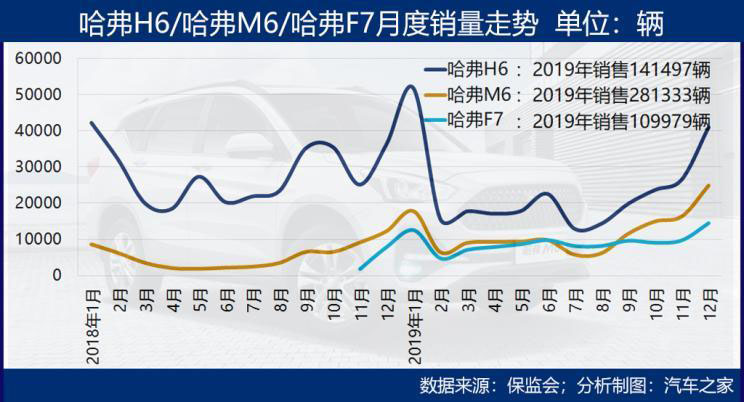 哈弗H6雖然繼續(xù)穩(wěn)坐車型榜頭把交椅,但是勢頭有所衰減,SUV領(lǐng)軍企業(yè)長城汽車這兩年又推出兩款緊湊型SUV,哈弗M6和哈弗F7。雖同為緊湊型SUV,但是哈弗M6的定價(jià)較哈弗H6低,后者指導(dǎo)售價(jià)10.30-14.10萬元,前者6.60-8.20萬元,下沉到了10萬元以下區(qū)間,哈弗F7的指導(dǎo)價(jià)是11.1-15.37萬元,比哈弗H6略高。三款定位略有差異的緊湊型SUV,面向不同消費(fèi)人群,確保了長城汽車在該市場的領(lǐng)軍地位。
