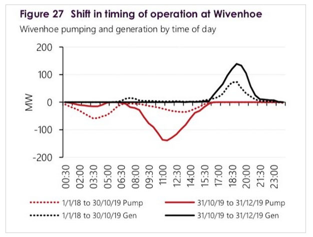 這種充電方式的變化幾乎是即時(shí)的,抽水蓄能設(shè)施在利用日間過剩的太陽能電力發(fā)揮了更加積極的作用,而在晚上的抽水量則更少。