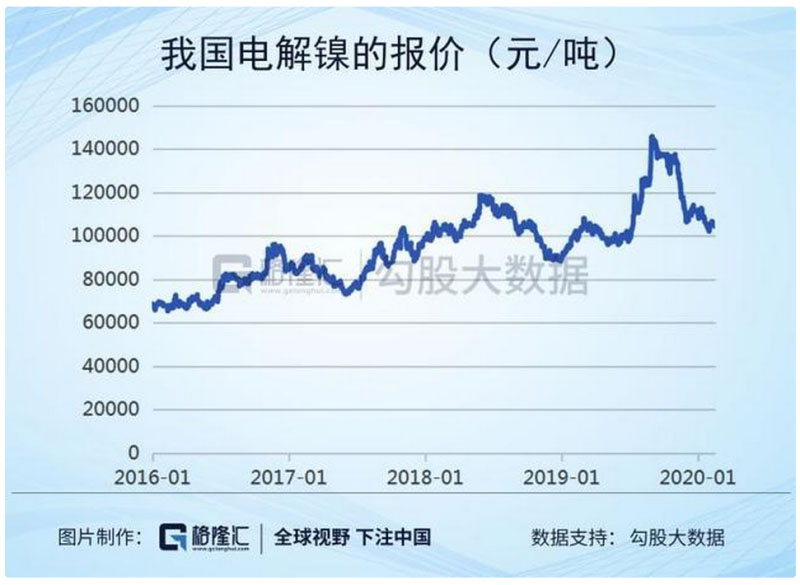 鈷作為一種稀有金屬,價格比較昂貴,但是對于穩(wěn)定三元電池層狀結構和提高循環(huán)次數(shù)有重要作用。在2017-2018年,由于新能源汽車迅速放量,而上游鈷產能沒跟上,價格出現(xiàn)暴漲,價格一度超過60萬元/噸。后來隨著產能擴產,價格出現(xiàn)回落,現(xiàn)在價格也有28萬元/噸。鈷作為稀缺資源,其價格波動將很大程度上影響三元材料的價格。如果新能源汽車產量進一步增長,意味著鈷價可能重新暴漲。寧德時代、松下、LG化學等電池廠商都在努力推行電池無鈷化,不過還未實現(xiàn)。
