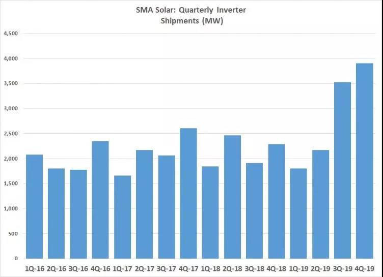 2019年下半年,SMA創(chuàng)下逆變器出貨新記錄,全年銷售額9.98億美元