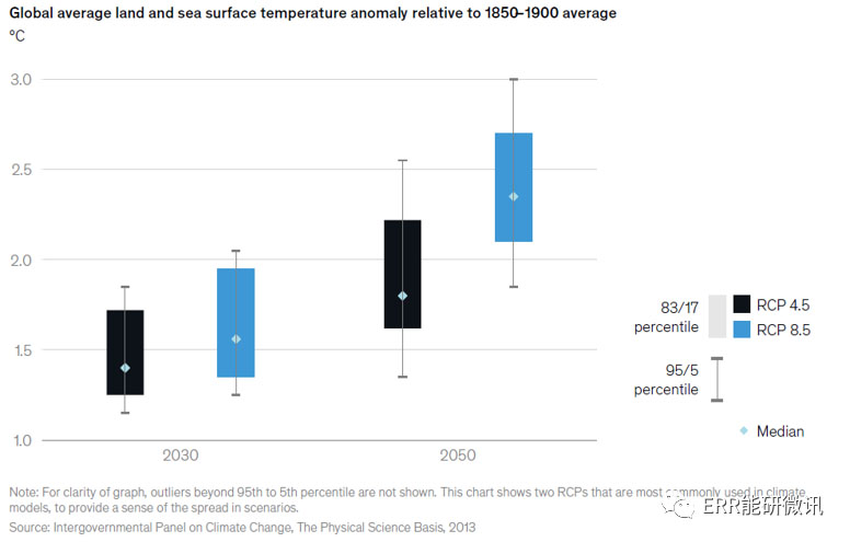 圖1 我們使用RCP8.5,因?yàn)樗枋龅母吲欧徘榫傲钗覀兡軌蛟跊]有進(jìn)一步脫碳的情況下評(píng)估物理風(fēng)險(xiǎn)。