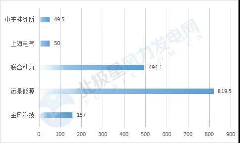 中標(biāo)風(fēng)電整機(jī)商涉及5家,分別是金風(fēng)科技、遠(yuǎn)景能源、聯(lián)合動(dòng)力、上海電氣、中車株洲所。