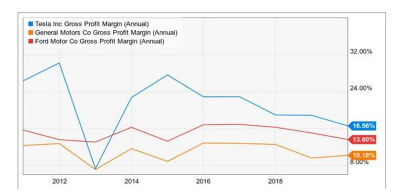 像福特汽車和通用汽車這樣的制造商被現(xiàn)有的經(jīng)銷商模式所束縛,這實際上會損害他們的利潤。經(jīng)銷商從每筆銷售中獲得部分利潤,因此你可以看到他們的利潤低于特斯拉。