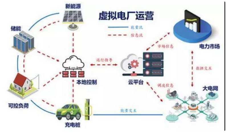 VPP就像是一個能源收集平臺,將一定區(qū)域內的光伏電池板、蓄電池等電源系統(tǒng)結合起來統(tǒng)一管理,根據(jù)不同的電力需求供應相應的電力。雖然每個電力規(guī)模很小,但積少成多,收集起來就能夠像一個發(fā)電站一樣輸出電力。