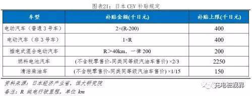 新能源財政補貼由經(jīng)濟產(chǎn)業(yè)省主導,分為四類:1)節(jié)能車補貼;2)CEV(CleanEnergy Vehicle)導入補貼;3)充電設(shè)施補貼;4)加氫設(shè)備補貼。其中節(jié)能車補貼于2012年9月廢除,被CEV補貼取代;加氫設(shè)備補貼主要針對氫燃料電池,充電設(shè)施補貼主要針對充電樁,當前新能源汽車主要推動力在“CEV導入補貼”。2012年6月日本舉行行政評議會審議了“CEV導入補貼”,并制定具體路線圖,實施機構(gòu)為隸屬于經(jīng)濟產(chǎn)業(yè)省的“新一代汽車振興中心”,最新規(guī)定如下表所示,電動車補貼與純電續(xù)航里程正相關(guān)。并要求:1)消費者獲取CEV車輛補助后,必須持有該車3-4年,如果不得已需要賣出須提前向中心申請;2)公式計算結(jié)果補助金不足15千日元的,不給予補助;3)當EV/PHV與汽油車的價格差縮小至50萬日元,且年銷量增加至10~15萬輛時,將不再作為補貼對象。