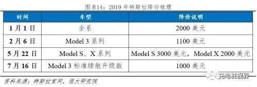 為抵御稅收減免沖擊,2019年1-7月特斯拉四次降價。以特斯拉為例,其2018年底在美國累計電動車銷量超過20萬輛,從2019Q1開始,其單車稅收減免從7500美元減少到3750美元;自2019Q3開始,其單車稅收減免從3750美元減少到1875美元;2020Q1稅收減免取消。為抵御稅收減免下調(diào)帶來的購置成本增加,特斯拉分別在2019年1月、2019年2月、2019年5月、2019年7月四次降價。