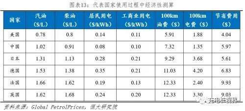 需求端:歐洲人對新能源汽車接受度更高,其燃油經(jīng)濟性更強。相比中國,歐盟在發(fā)展新能源汽車方面有幾大優(yōu)勢:1)歐洲人環(huán)保意識強,偏好緊湊型車,新能源汽車接受度高,2018年歐盟A00、A0、A型小轎車合計占比41%;2)歐洲推廣電動汽車經(jīng)濟性更強,按照純電動乘用車電耗每100km消耗15kWh,工業(yè)/居民用電各50%,乘用車汽油車、柴油車占比60%、40%,每100km耗油7.5L計算,使用純電動車每100km美國、中國、日本、德國、法國、英國車企可分別節(jié)約4.04、5.97、5.61、6.83、9.93、9.03美元。