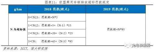 4)罰款力度更重:2018年根據(jù)碳排放具體值分階段處罰,但是從2019年起全部按照最高標準處罰,每超標1g/km罰款95歐。2018年歐盟范圍內(nèi)注冊新乘用車碳排放平均值121g/km,銷售1562萬輛;假設(shè)2020年碳排放和銷量保持不變,需要罰款(121-95)×1562×95=385.8億歐元。