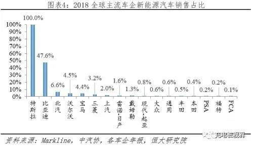 特斯拉、比亞迪新能源車型滲透率遠超其他車企,美國、日本車企電動化轉(zhuǎn)型步伐較慢。分車企來看,2018年新能源汽車新車銷量占比,除特斯拉100%、比亞迪47.6%外,其他車企皆低于10%;其中北汽、沃爾沃、寶馬、三菱、上汽超過2%,通用、福特、豐田、本田等不到1%。