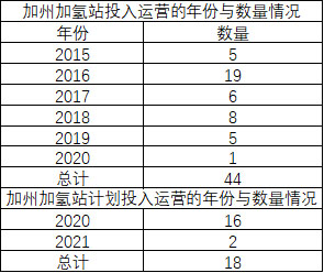 需要指出的是,根據(jù)加州燃料電池合作伙伴組織(CaFCP)的數(shù)據(jù),截止2019年底,加州擁有加氫站44個,其中在2019年新增了5個。這與H2stations數(shù)據(jù)有所出入。