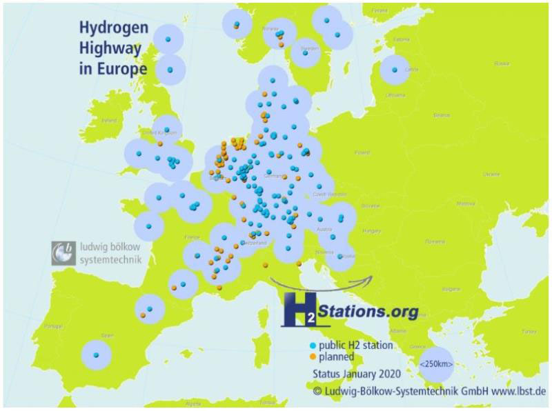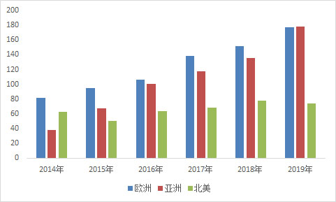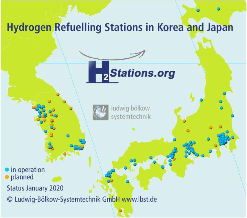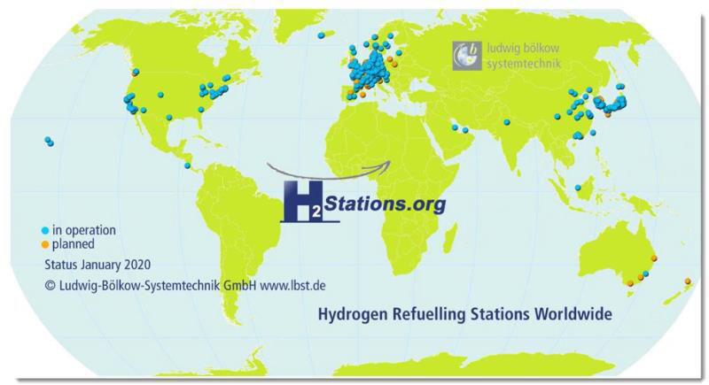 亞洲方面,截止2019年底共有178個加氫站,日本有114個,韓國有33個。已確定的27個中國加氫站幾乎專門用于給公共汽車或卡車車隊加油。預(yù)計韓國將實現(xiàn)最雄心勃勃的近期增長,計劃在韓國計劃建造約40個汽車和公交車加氫站。