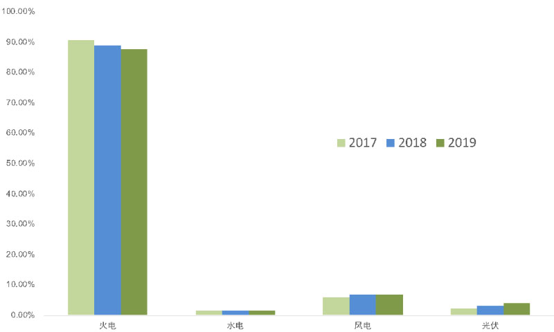 圖6 山西2017、2018、2019年發(fā)電量占比