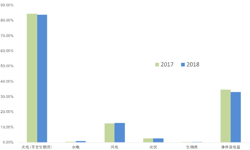 據(jù)國(guó)家統(tǒng)計(jì)局?jǐn)?shù)據(jù),內(nèi)蒙古2017年和2018年全省電量平衡構(gòu)成如圖5所示。分析發(fā)現(xiàn),內(nèi)蒙古電源結(jié)構(gòu)以火力發(fā)電為主,電力外送量占總發(fā)電量比重超過(guò)30%。2018年,內(nèi)蒙古全社會(huì)用電量增速達(dá)到15.95%,凈外送電量同比降低8%,可再生能源電力增速達(dá)到17%。但是內(nèi)蒙古非水可再生消納量并沒有達(dá)到要求??梢?,隨著產(chǎn)業(yè)轉(zhuǎn)移的加速和西部地區(qū)終端用能電氣化率的提高,廉價(jià)電力為本省經(jīng)濟(jì)社會(huì)發(fā)展服務(wù),特別是優(yōu)質(zhì)可再生資源電力服務(wù)本省的訴求正在凸顯,這在可再生能源消納責(zé)任機(jī)制啟動(dòng)后將愈加明顯。