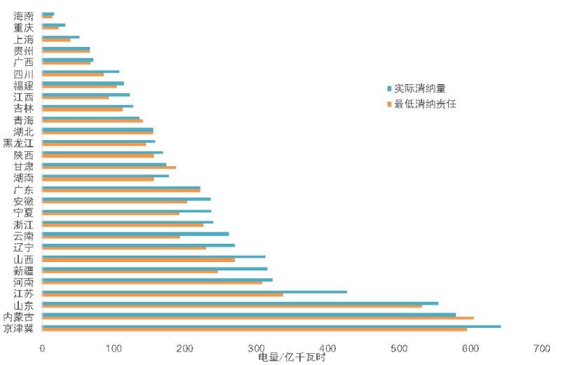 圖1 2018年可再生能源消納量與最低消納責(zé)任