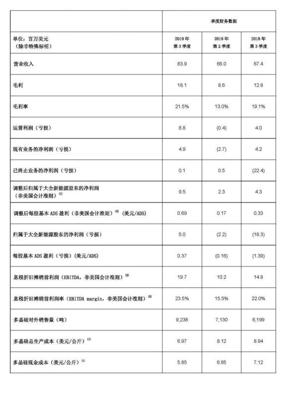 2019年11月,大全公布的2019年三季度財報中介紹,