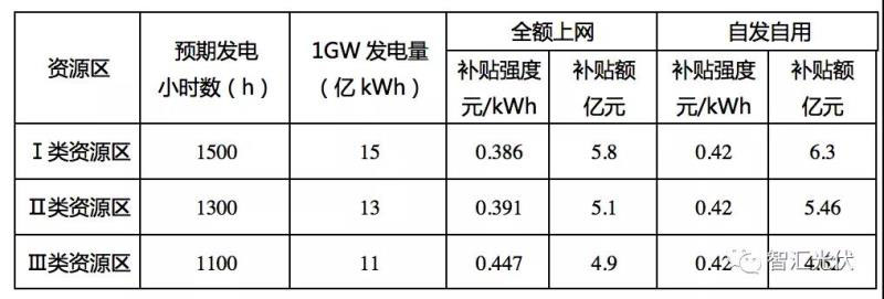 不同類型、不同地點的光伏扶貧項目,1GW需要的補貼如下表所示。