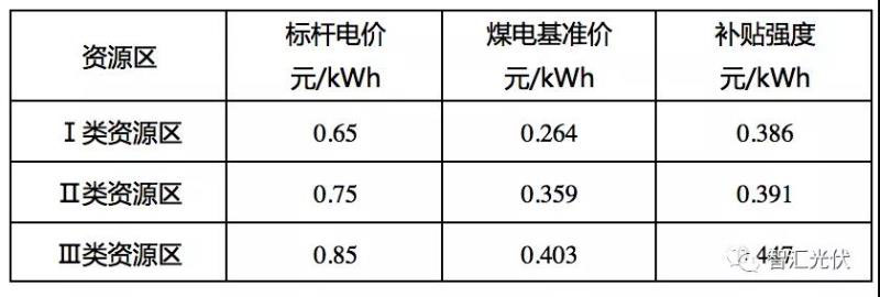 自2017年發(fā)布第一批光伏扶貧項目開始,光伏扶貧項目的電價始終是全額上網(wǎng)執(zhí)行0.65元/kWh、0.75元/kWh、0.85元/kWh的電價,自發(fā)自用執(zhí)行0.42元/kWh的度電補貼。如果以目前的煤電基準價考慮,則不同資源區(qū)的度電補貼如下表所示。