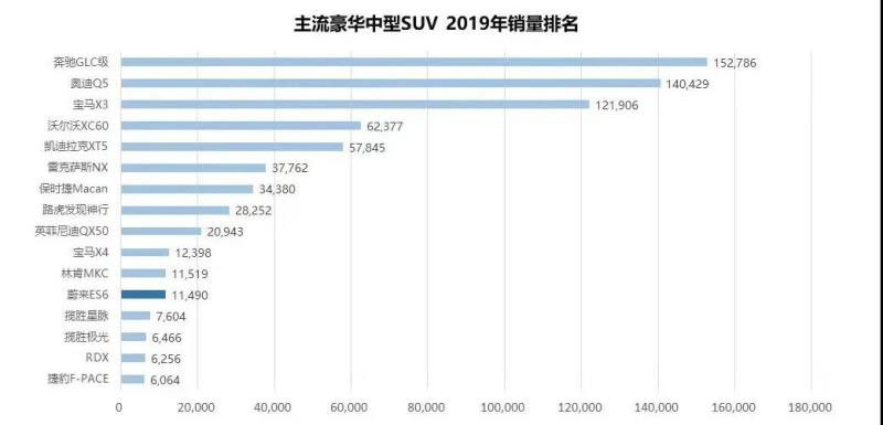 其中,ES6在2019年累計(jì)銷售11490輛,在主流豪華中型SUV銷量排名中,位列第12位。其競爭對(duì)手均為燃油車。