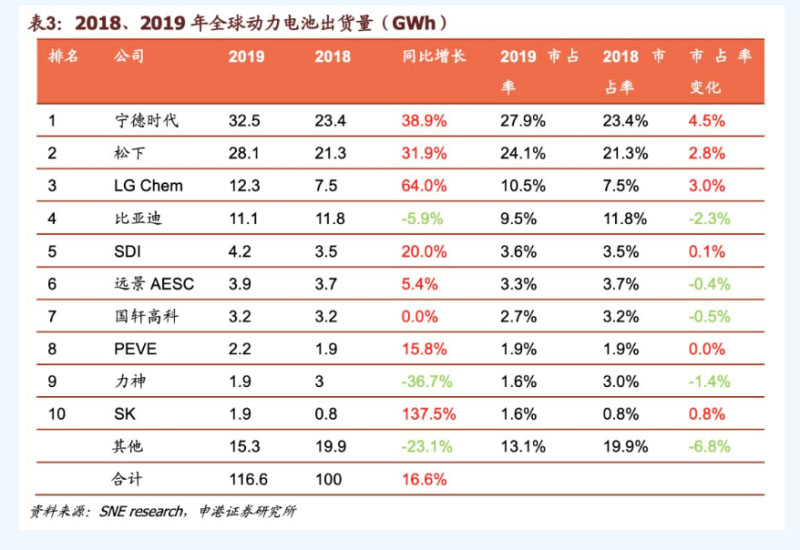 公司作為動力鋰電池龍頭企業(yè),2019全年動力電池總裝機(jī)量32.5GWh,同比增長38.9%,全球市占率達(dá)到27.9%,同比提升4.5pct,并以顯著優(yōu)勢領(lǐng)先。隨著產(chǎn)能規(guī)模不斷擴(kuò)大,下游客戶不斷拓展加固,公司出貨水平將進(jìn)一步高速增長。