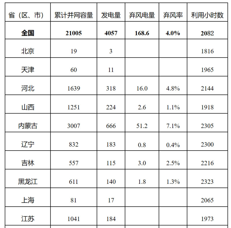 3.棄風(fēng)電量、棄風(fēng)率來源于國家可再生能源中心、相關(guān)電網(wǎng)企業(yè)。數(shù)據(jù)為空白的表示不存在棄風(fēng)現(xiàn)象。