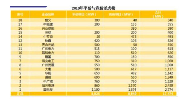 關(guān)于2019年平價(jià)、競(jìng)價(jià)項(xiàng)目,陳文彬指出,中廣核、三峽等多家企業(yè)平價(jià)、競(jìng)價(jià)裝機(jī)容量相同,這是企業(yè)為了預(yù)防消納出現(xiàn)問(wèn)題而制定的策略。