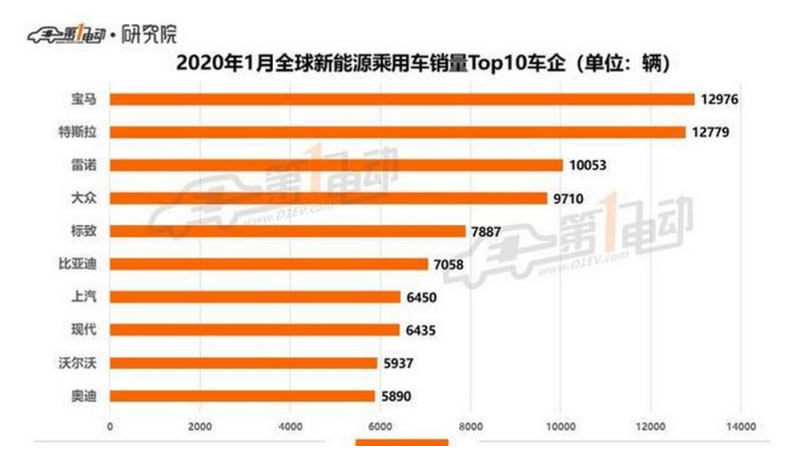 從車企1月銷售總量來看,寶馬集團憑借推進插電式混合動力車型銷售,實現(xiàn)了128%的同比增長,當(dāng)月銷售接近1.3萬輛,特斯拉以197輛的差距屈居第二。