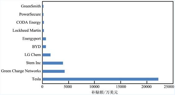 圖22011—2019年7月間各儲能廠商累計獲得的補貼金額