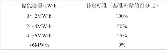 表2不同儲能系統(tǒng)時長對應的補貼標準