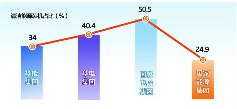 從清潔能源裝機占比來看,2019年,國家電投集團清潔能源裝機占比50.5%;光伏發(fā)電裝機1929萬千瓦,繼續(xù)保持世界第一。華電集團清潔能源裝機占比達到40.4%,同比提高0.71個百分點。華能集團結構調(diào)整取得新突破,低碳清潔能源裝機超過6100萬千瓦,裝機比重超過34%。國家能源集團非化石能源裝機占比為24.9%,同比提高0.5個百分點。(大唐集團數(shù)據(jù)略)