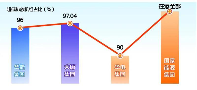 2019年,華能集團污染防治攻堅深入推進,累計289臺、96%的煤機實現(xiàn)超低排放,完成“十三五”國家改造任務的110.5%。大唐集團超低排放燃煤機組容量占比達97.04%。華電集團抓好超低排放機組改造,超低排放機組占比超過90%,單位電能煙塵、二氧化硫、氮氧化物排放量分別同比降低13.5%、11.1%、5.8%。國家能源集團開展污染防治,在運常規(guī)煤電機組全部實現(xiàn)超低排放,煙塵、二氧化硫和氮氧化物等污染排放績效同比分別下降 21.1%、12.4%和9.64%。國家電投集團加強超低排放改造,加大污染物排放管控力度,實現(xiàn)排放達標。(國家電投集團數(shù)據(jù)略)