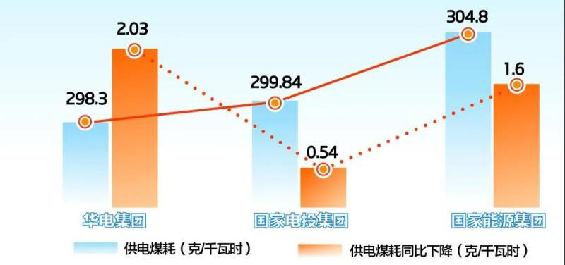 2019年,華電集團供電煤耗完成298.3克/千瓦時,同比下降2.03克/千瓦時,實現(xiàn)了300克/千瓦時以下的歷史性突破。國家電投集團供電煤耗同比降0.54克/千瓦時,為299.84克/千瓦時。國家能源集團供電煤耗完成304.8克/千瓦時,同比下降1.6克/千瓦時。(華能集團、大唐集團數(shù)據(jù)略)