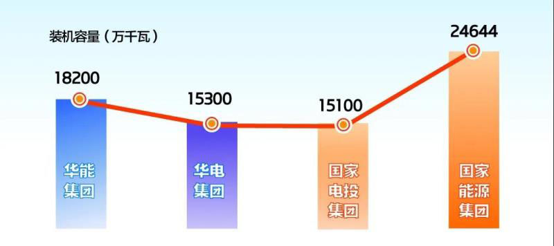 截至2019年底,國家能源集團全年新增電力裝機757萬千瓦,裝機容量達24644萬千瓦。華能集團裝機總量達到18200萬千瓦。華電集團裝機容量為15300萬千瓦。國家電投集團裝機規(guī)模達15100萬千瓦。(大唐集團數(shù)據(jù)略)