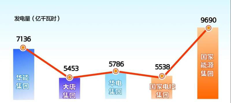 國家能源集團發(fā)電量9690億千瓦時,同比增長1.65%,處在領跑位置。華能集團完成發(fā)電量(國內(nèi))7136億千瓦時,同比增長1.56%。華電集團完成實發(fā)電量5786億千瓦時,同比增長4.09%。國家電投集團全力以赴增產(chǎn)增收,全年發(fā)電量5538億千瓦時,同比增長11.2%。大唐集團完成發(fā)電量5453億千瓦時。