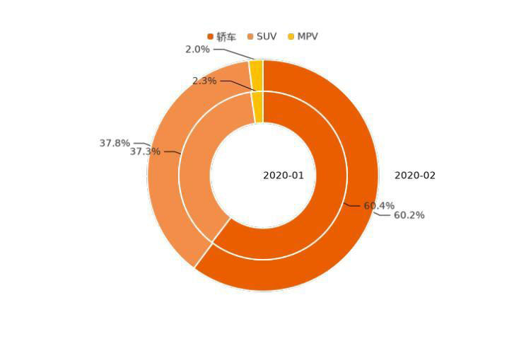 2月,新能源車中轎車、SUV、MPV用戶購車意向占比分別為60.6%、37.4%、2.1%。轎車用戶意向占比相較上月下降0.6個百分點,份額開始回落。SUV用戶意向占比開始轉跌為升,環(huán)比增加0.8個百分點。MPV用戶意向占比2月環(huán)比降低0.1個百分點,意向占比仍較低。整體來看,SUV車型用戶意向在經歷了一段時間的份額擴張后逐步回調,轎車市場熱度逐步回溫,市場回歸理性。但作為日常家用車,新能源轎車車型相對SUV車型還是更具優(yōu)勢。