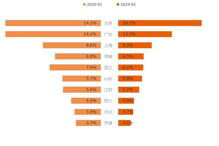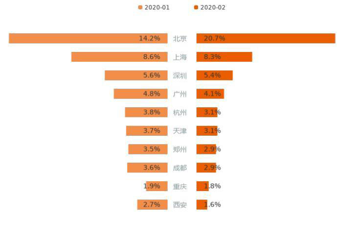 ■ 分區(qū)域走勢:意向占比達20.7%,北京大幅領先其他城市
