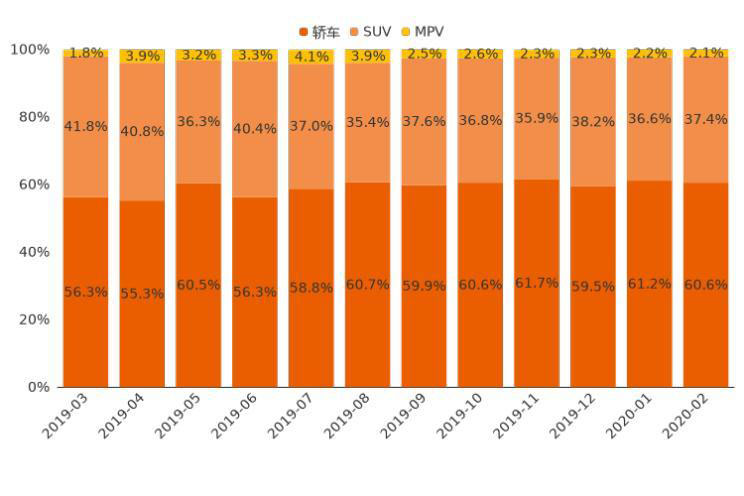 ■ 分車型級別走勢:轎車用戶占比回落,SUV意向占比上升