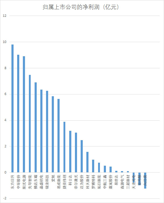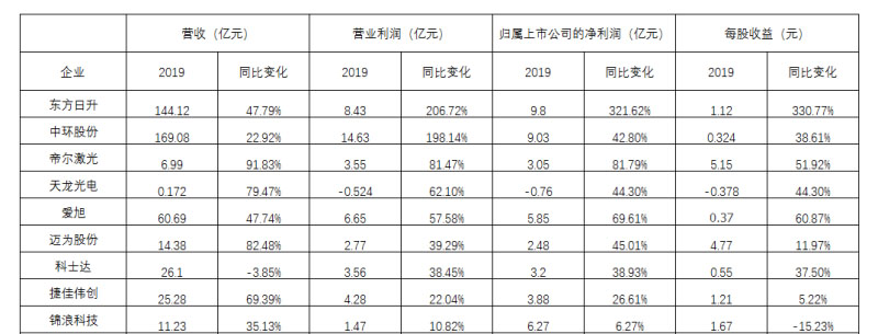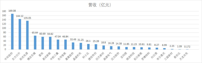 在已公布業(yè)績(jī)快報(bào)的企業(yè)中,營(yíng)收超過百億的企業(yè)有中環(huán)股份、東方日升及陽光電源。