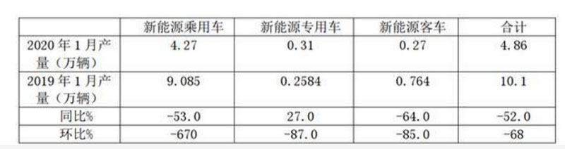 根據(jù)工信部合格證數(shù)據(jù),2020年1月新能源汽車供生產(chǎn)4.86萬輛,同比下降52%,環(huán)比下降68%,其中新能源客車2020年1月產(chǎn)量為0.27萬輛,同比下降64%,環(huán)比下降85%,現(xiàn)將2020年1月新能源客車產(chǎn)量特點(diǎn)簡析如下,供行業(yè)參考。