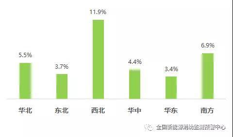 西北地區(qū)棄風(fēng)棄光持續(xù)改善,全年棄風(fēng)率、棄光率同比分別下降8.8個(gè)百分點(diǎn)、3.8個(gè)百分點(diǎn),新疆、甘肅新能源消納形勢(shì)顯著好轉(zhuǎn),青海棄風(fēng)棄光有所增加;華北地區(qū)全年來(lái)風(fēng)總體偏小,客觀上減少了消納壓力,全年棄風(fēng)率6.9%,棄光率1.1%;東北地區(qū)新能源消納繼續(xù)保持較好態(tài)勢(shì),全年棄風(fēng)率3.0%,基本無(wú)棄光;華中、華東和南方地區(qū)消納情況整體較好,四季度除西藏、云南存在一定棄風(fēng)棄光,其余地區(qū)無(wú)新能源消納問(wèn)題。