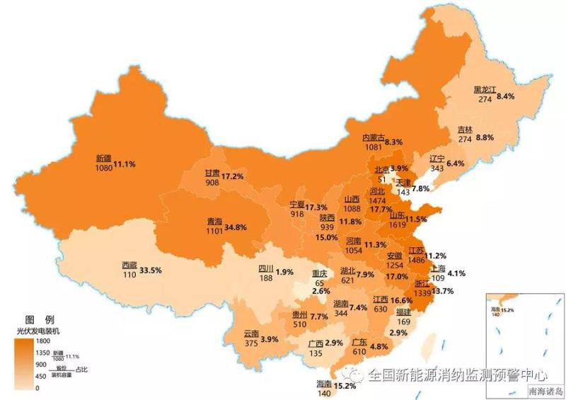 截至12月底各地區(qū)累計(jì)光伏發(fā)電量(億千瓦時(shí))及占本地區(qū)總發(fā)電量比重