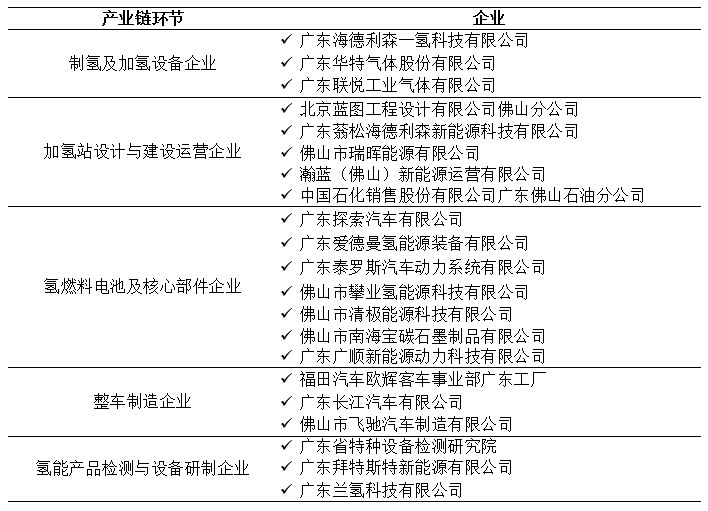 表1 佛山市氫能產(chǎn)業(yè)鏈企業(yè)
