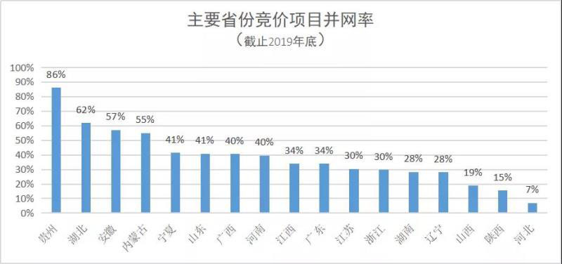 遼寧因為新的競價項目只有分布式光伏,所以28%的并網(wǎng)率可以反映出,東北的分布式項目很難吸引投資企業(yè)的關(guān)注。而山西、陜西和河北的并網(wǎng)率都不足20%,意味著這三個省的管理模式在2020年有待進一步提升和改進。