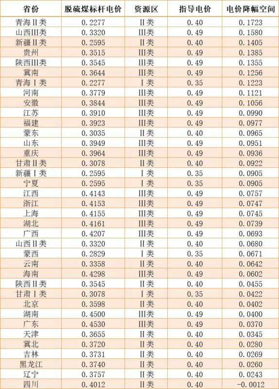 從電價(jià)降幅空間來(lái)看,青海、新疆二類、山西三類、貴州、陜西、冀南、河南、安徽等地降價(jià)幅度均可超過(guò)0.1元/千瓦時(shí),相對(duì)競(jìng)價(jià)優(yōu)勢(shì)更為明顯一些。但以四川、冀北、湖南、廣東以及東三省為代表的地區(qū),電價(jià)降幅空間僅有2-3分/千瓦時(shí)左右。具體數(shù)據(jù)見(jiàn)下表: