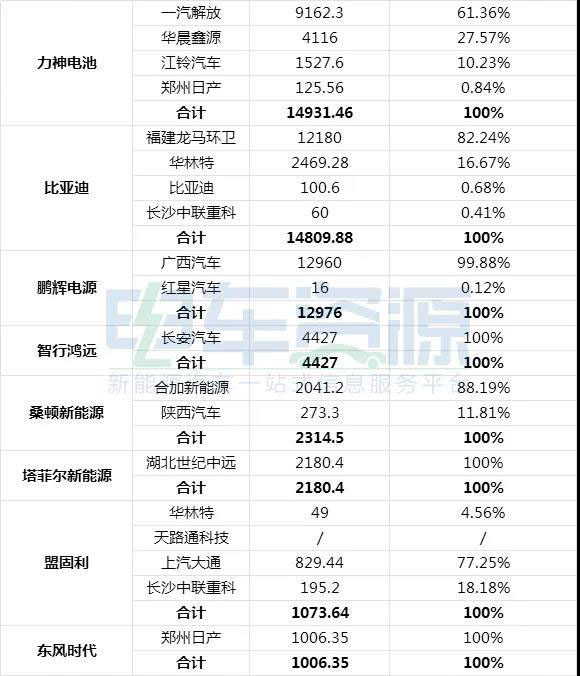 三、主要?jiǎng)恿﹄姵仄髽I(yè)配套新能源專用車廠商情況